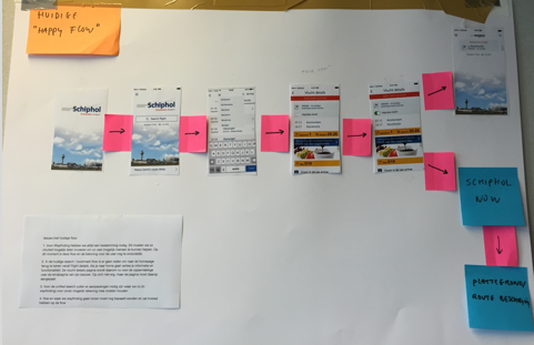 Based on technical feasibility we explored the different solutions and sketched out the user flows. Then we discussed and decided the most feasible solution for this new user flow using a "dot vote" method with different stakeholders from relevant Schiphol departments.